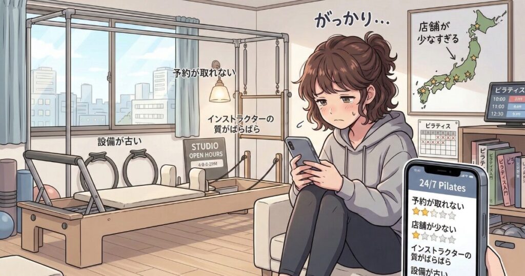 清潔感のある空間で楽しく通えると評判の24/7ピラティスですが、一方で「希望日に予約が取れない」といった不満の声も寄せられています。