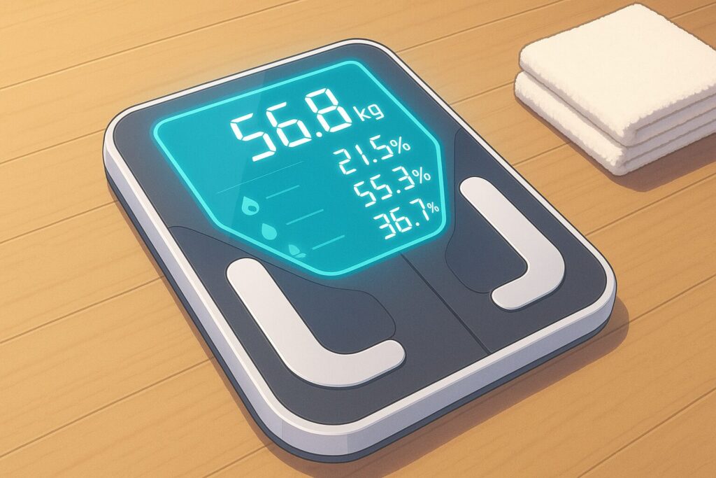 お風呂上がりにすぐ体重を測れるのが便利で、アプリと連動して体年齢や基礎代謝なども表示されます。正確性については分かりませんが、日々の指標として役立っています。